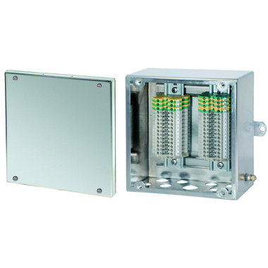 Terminal strip enclosures for explosive atmospheres are delivered certified with terminal strips and leadthroughs. Applications Exe or Exi.